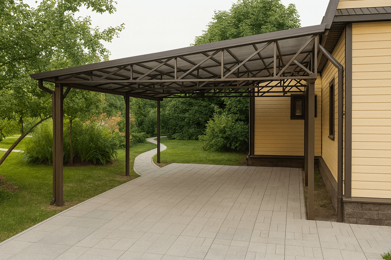 Если вы планируете осуществление строительства навеса с односкатной крышей, важно понимать, что на итоговую цену влияют: