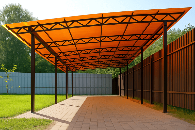 Односкатный навес — это универсальное решение для защиты автомобиля, зоны отдыха или хозпостройки от осадков и солнца. Благодаря своей конструкции он прост в реализации и отлично подходит для участков с ограниченным пространством. Мы реализуем односкатный навес с учетом ветровой и снеговой нагрузки, рельефа и пожеланий заказчика.