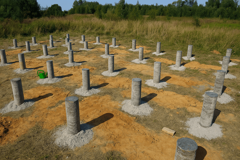 Обычно фундамент ТИСЭ обходится дешевле, чем монолитная плита или ленточный фундамент, особенно на небольших участках и в условиях сложных грунтов. Это делает его выгодным решением для загородных домов, бань и компактных построек.